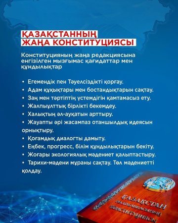 Конституцияның жаңа редакциясында Қазақстан дамуының мызғымас қағидаттары нақты бекітілді. Егемендік пен Тәуелсіздікті сақтау, адам құқықтары мен бостандықтарын қорғау, заң мен тәртіптің үстемдігін қамтамасыз ету негізгі басымдықтар ретінде айқындалды.